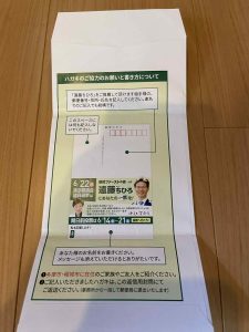 証拠のメールや郵便物がすべて選挙を意識した内容で告示前に私宛に届いていました。