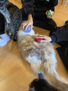 2025年11月19日 / 最終更新日 : 2025年11月19日 tamaneko その他 職場体験&ラニアちゃんのお誕生日♪ 今日から3日間職場体験の中学生がいらっしゃいました。 3人とも仲良しみたいです それぞれの夢がトリマー、キッチンカーでアサイーボウル作りたい、ダンサーと 三者三様でかわいいなと思いました。 お昼休憩中 うちの仕事はひたすらお掃除です。 1も2も3も掃除。 そして猫たちのお世話が少し。 猫カフェの仕事は意外とねこのことより掃除が一番です 中学生だとなかなかわからないことも この3日間でいろいろと体験してもらえたらと思います。 ラニアちゃんブラッシング中 実は今日はラニアちゃんのお誕生日です 8歳おめでとう! 珈琲猫(サイン付き)お申し込みはこちらから! にほんブログ村 FacebookX