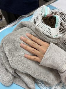 補液中ですがネットから出せずに顔も覆っていますので